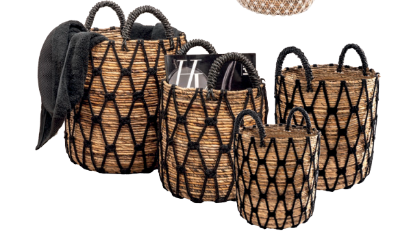 Набор из 4 корзин Cipi, диаметр 25,30,35,40 cm, высота 30см, в черном цвете.